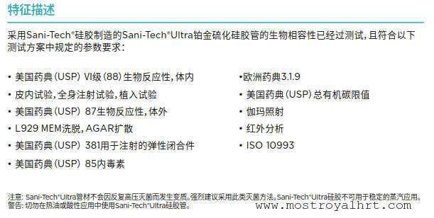 材质:硅橡胶 类别:药用硅胶管 品牌:圣戈班 型号:UItra  -
